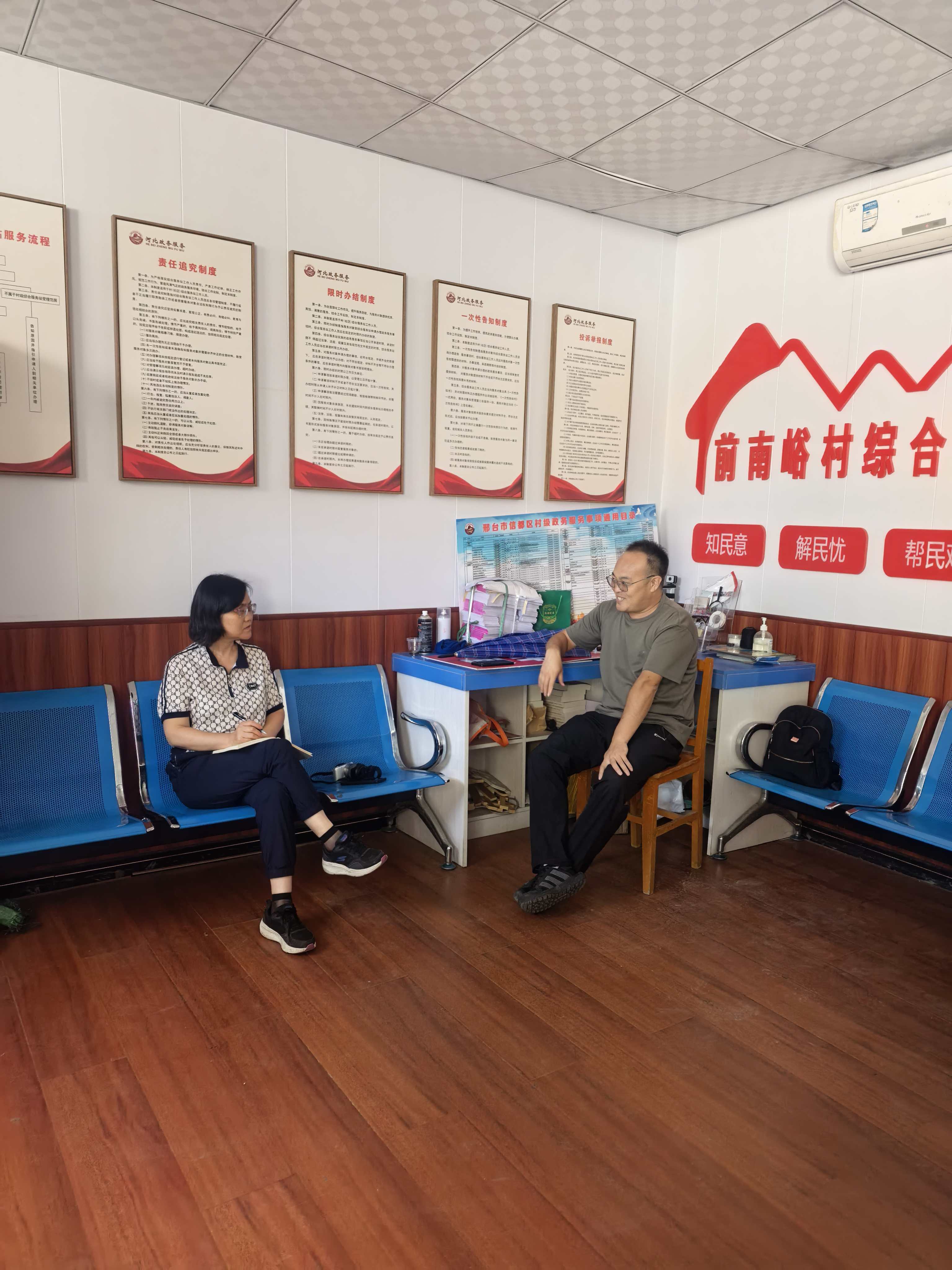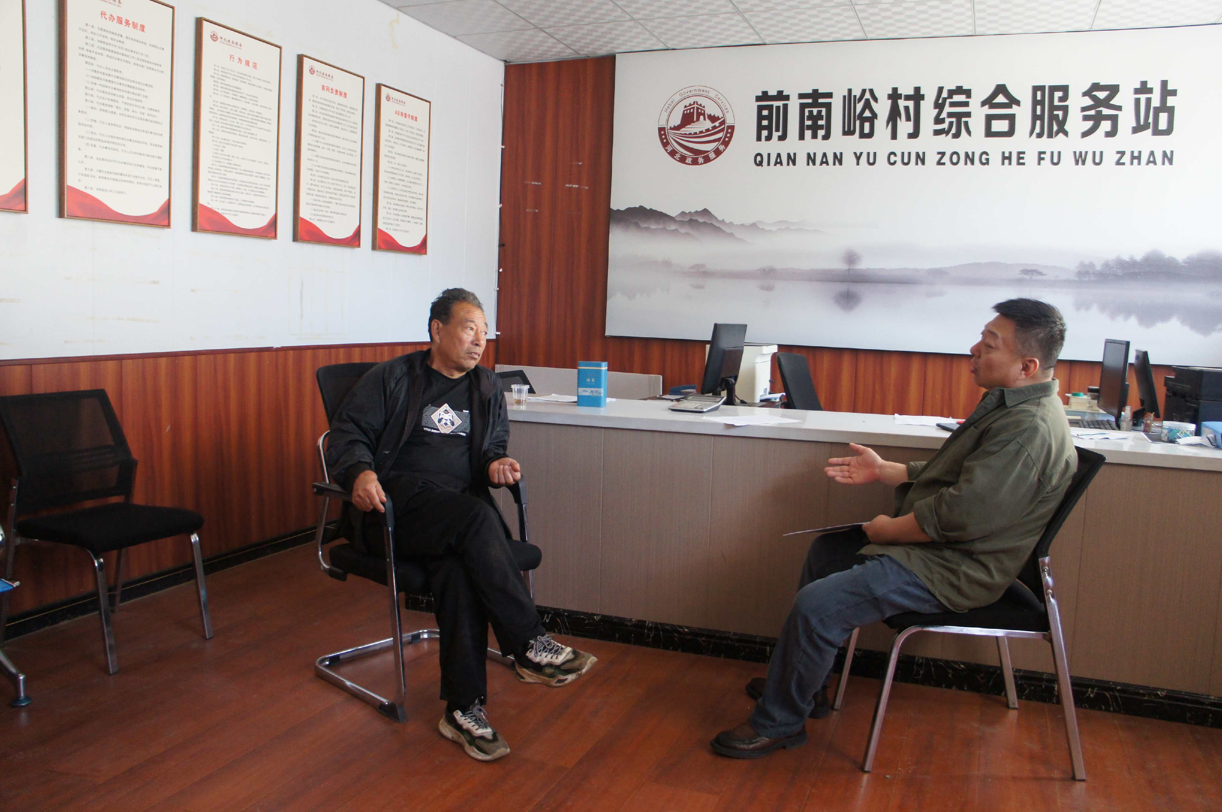(交通瞭望栏目组与前南峪村委干部交谈果林发展)