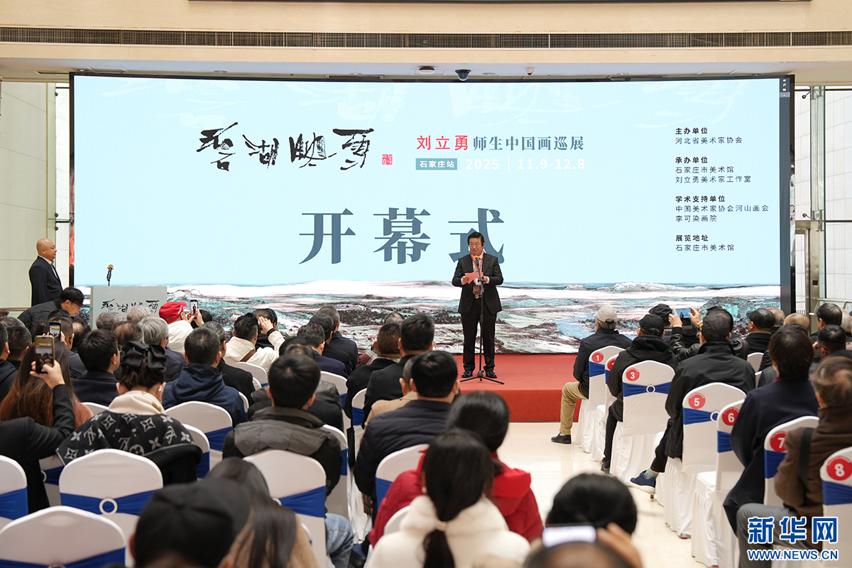 新华网石家庄11月10日电(毛鹤然)11月9日上午,“碧湖映雪”刘立勇师生中国画巡展(石家庄站)在河北省石家庄市美术馆拉开帷幕。本次画展由河北省美术家协会主办,石家庄市美术馆、刘立勇美术家工作室联合承办,中国美术家协会河山画会、李可染画院给予学术支持,展期将持续至12月8日。